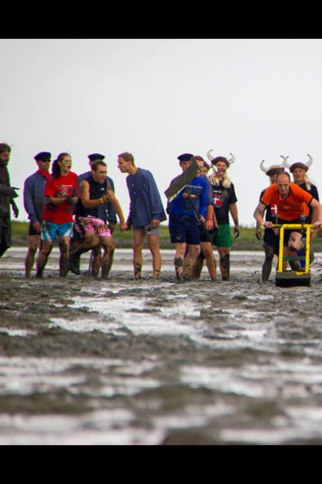 Na gut. Weil der Wunsch da war, schreibe ich mal ein wenig dazu. Eigentlich wollte ich an diesem Tag mit Hecke nach Upleward bei Greetsiel fahren, aber weil er sich beim Ironman Zürich so schwer verletzt hatte, daß er im Watt nicht starten konnte, sprang sein Double "wieder" für ihn ein. Mein Nachbar. Wir kammen zeitgleich mit Pfleges Team an. Kurzes Hallo...und dann gings zur Anmeldung. Bloß 10 Euronen pro Team mußte berappt werden. Die Mädels von der Anmeldung drückten uns noch Duschgel/Shampoo in die Hand und los gings zum Umziehen. (Wenn die wüßten, wie sehr wir das Zeug noch gebraucht haben). Auf den Tip von Shorty habe ich Farbpigmente und Kindersonnencreme Faktor 50 besorgt. Dann runter mit den Klamotten und Badehose an. Wir hatten mehrere Schälchen und Handschuhe zum Anmischen von der Farbe mit. Meine Kinder und unsere Frauen konnten sich dann an uns austoben wie sie lustig waren. Wir haben uns vorher eigentlich keine Gedanken gemacht, was für ein Muster oder so auf uns rauf sollte. Egal.... hauptsache bunt. Mein Kumpel Helge hatte schon tagelang Riesenbedenken, daß die Farbe nicht mehr runtergeht. Besonders tief war seine Stimmung als Pflege um die Ecke kam und noch nach Farbe gefragt hatte. Als ich ihm die Sonnencreme gezeigt hatte, von der leider nur noch ganz wenig da war, lehnte er abstoßend ab mit den Worten "Ich bin doch nicht verrückt. Das Zeug wirkt so wie ein Tattoo....das kriegt ihr nie wieder ab". Im Endeffekt nahm er für sein Team noch ein wenig Grün für die Augen mit. Von 20 gemeldeten Teams sind 18 schließlich vor Ort gewesen. Kurze Ansprache vom Orginasator, wie der Ablauf des Tages vonstatten geht und die Spielregeln wurden erklärt. Und dann hieß es "Aufstellen zum geordneten Einlauf in die Wattarena". Nach 5 Minuten gings los. Der Einlauf war schon beeindruckend. Alle Teams sind der Reihe nach den Deich hoch, dann vielleicht 50 Meter auf ihm gelaufen und dann mit Vorstellung durch die Menge. Für die Zuschauer glaube ich war das schon ein schönes Bild gewesen. Dann gabs noch ein paar gute Worte vom Schirmherr Tamme Hanken, dem XXL-Ostfriesen zum Thema Spendenbereitschaft und Nichtzahlbereitschaft der Krankenkassen. Alle Einnahmen aus dieser Veranstaltung gingen an den Verein für krebskranke Kinder in Ostfriesland und Umgebung. Anschließend gings mit Sport los. Zunächst Wattfußball. Ein Spiel dauerte immer 5 Minuten auf einem 12x20 Meter Feld und war ein einziges Schlammfest. Da war ich schon ein wenig neidisch als ich den Heckenpenner mit Interceptor dort spielen gesehen hatte. Wir meldeten uns zwar auch an für Fußball, aber bekamen leider keinen Startplatz. Einfach kein Glück gehabt. Wir nutzten diese Zeit dann um uns mit den Schlickschlitten vertraut zu machen. Gar nicht so einfach. Man mußte permanent mit einem Knie auf dem Schlitten aufliegen und das andere Bein gab Anschwung. Eingesackt im Watt sind wir übrigens so etwas mehr als eine Chucks-Höhe. Richtig warm war der Schlick. Was auch beeindruckend war, war die Menge an Zuschauern. Ich bin schlecht im schätzen, aber ich denke das waren so ca. 2000 Leute. Nun kam der Aalsprint (Leider auch keinen Startplatz bekommen). Jede Mannschaft mußte dafür 3 Läufer stellen. Man startet mit dem Aal in der Hand, (NEIN...NICHT DER !!!!....Der Aal war eigentlich ein zurechtgeschnittender Fahrradschlauch) läuft bis zur 50 Meter-Marke, wendet und läuft zurück, dann Übergabe an den nächsten, usw. Als das durch war kam es Lückenlos zum Hauptlauf: Dem Schlickschlittenrennen. Es hat angefangen mit der ersten Disziplin, dem 50 Meter-Schlittensprint. Mein Kumpel Alex hatte sich dem angenommen. Nach dem Startschuß hatte ich ganz schön gestaunt, wie schnell er gefahren ist. Kopf an Kopfrennen mit dem Team Waterhörn (die auch die gesamte Veranstaltung gewonnen hatte). Zuerst dachte ich, es wäre der zweite Platz gewesen, aber auf JiuTiub sah man sehr schön, daß er als erstes durchs Ziel kam. Dann kam der Reusenlauf über 150 Meter denn ich übernahm. Ich ging mit gemischten Gefühlen an den Start, weil ich nicht wußte, wie mein Rücken das mitmacht (hatte ich sehr akut über die letzten 2 Wochen). Beim Reusenlauf gings mit dem Schlitten bis zur 50 Meter-Marke, dann absteigen, 25 Meter bis zur Reuse, Aal rausholen und genauso wieder zurück. Ater Falter. Hin war kein Problem, aber der Rücklauf nahm mir alle Luft aus den Lungen. Voll anstrengend. Keine Ahnung welcher Platz. War ja eigentlich auch egal gewesen. Der Spass stand da voll im Vordergrund. Hauptsache alle Fahrer haben alles gegeben. Nun kam der Schlickschlitten-Staffellauf über 300 Meter. Mit dem Schlitten gehts bis zur 50 Meter-Marke, dann wenden und zurück, Schlitten wieder wenden und an den nächsten übergeben. Das Wenden war schon eine Sache für sich. Für Leute die das nicht kannten eXtrem schwierig. Den Staffellauf mußten wir in einem ziemlich heftig einsetzenden Platzregen bestreiten. Für uns Teilnehmer ein riesenspaß, aber die Zuschauer flüchteten. Nachdem das Rennen gelaufen war, sind wir gleich unter die Dusche. uns war scheißenkalt. D.h. die Siegerehrung wollten wir den Gewinnern überlassen. Ich hätte nicht im Traum gedacht, daß wir den zweiten Gesamtsieger machen, sonst wären wir natürlich noch geblieben. Na ja... war dann halt so. Die vierte Disziplin hatte uns dann in der Dusche erwartet. Über eine halbe Stunde waren wir in der Einzelkabine und haben VERSUCHT die Farbe wieder abzubekommen. Waschpulver, Handwaschpaste, Duschgel/Shampoo.... alles dabei, aber das war echt eine Tortur. Coco hatte sich beim Kopf anmalen gedacht, daß derjenige ordentlich Farbe braucht. Ich hatte schon bildlich vor Augen den nächsten Arbeitstag bunt zu verbringen. Wir haben uns anschließend dann zu zweit in eine Kabine gezwängt und uns schön gegenseitig den Körper mit einer fiesen Bürste geschrubbt. Als ich aus dem Duschhaus gekommen war, drückte mir Schnorrest oder Anakonda (ich habe die Namen durcheinander gebrac