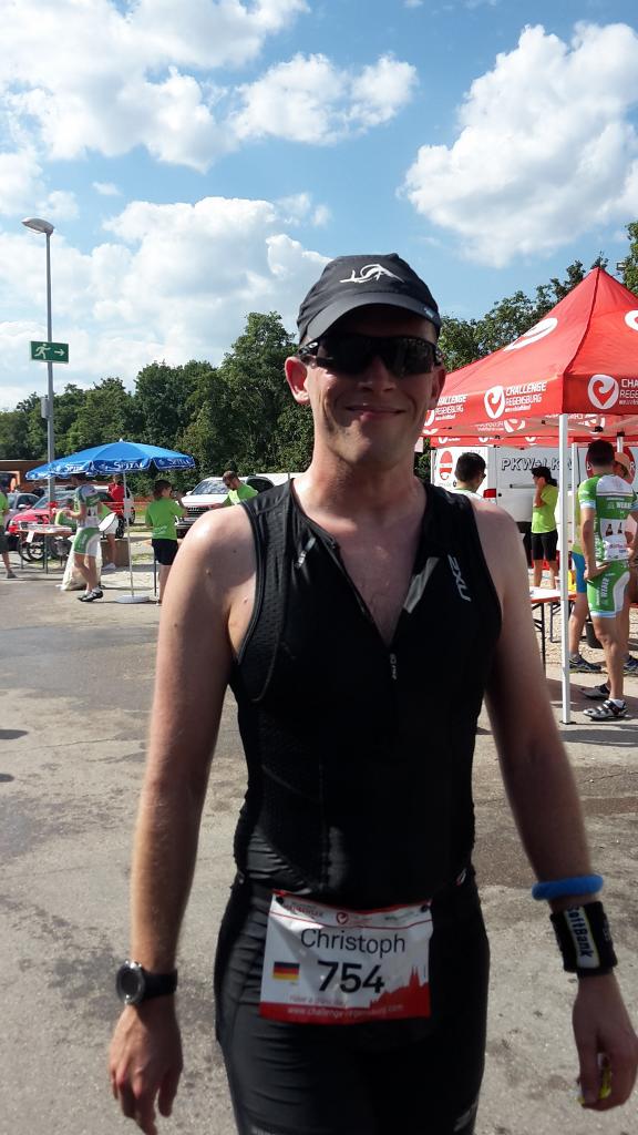 Erst mal danke an die Leute hier, die mir Mut zugesprochen haben. Ich war im Training doch sehr unsicher. Verglichen mit dem, was man so in Büchern oder im Internet ließt, hab ich echt wenig trainiert. Ich habe gerade nochmal geschaut. Ich bin in der Vorbereitung insgesamt 110 h gelaufen, 98 h geradelt, 7 h 40 min geschwommen und hab 11 h sonstiges (Stabi, Crosstrainier etc.) gemacht. Von Januar bis Juli, habe ich im Mittel 7h trainiert. Der stärkste Monat war der Juli, mit 11,5 Stunden pro Woche. Viel mehr Zeit zum trainieren, hab ich auch nicht. Gerade am Anfang des Jahres bin ich auch noch viel Abends mit der Stirnlampe raus. Das war allerdings nicht immer lustig. Generell war mein Traininn schon sehr lauflastig. Das liegt daran, dass Laufen am wenigsten aufwendig ist, auch auf Dienstreisen geht und mir am meisten liegt. Geschwommen bin ich sehr wenig. Zum einen weiß ich gar nicht, wann ich das machen soll. Wenn ich Zeit habe, dann sind die Bäder zu. Außerdem hab ich mir gedacht, dass ich die Zeit lieber für die anderen beiden Disziplinen investiere und schwimmen nur auf "überleben" trainiere.
