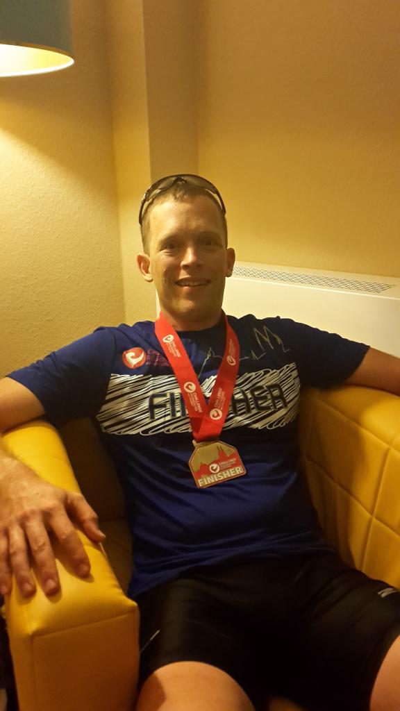 Ich war erst mal mega happy den Radpart hinter mir zu haben. Beim Radfahren ist man ja auch der Technik ausgeliefert. Das Knacken hat auch nicht gerade zu meiner Beruhigung beigetragen. Bisher hatte ich auch unter 8h für den Spaß gebraucht. Zeitlimit war 16 h, also war klar, dass ich heute das Ziel auch sehen würde. Notfalls wäre ich den Marathon gewandert. Aber genau genommen gingen meine Rechenspiel im Kopf in Richtung sub 12 h. :schaem: