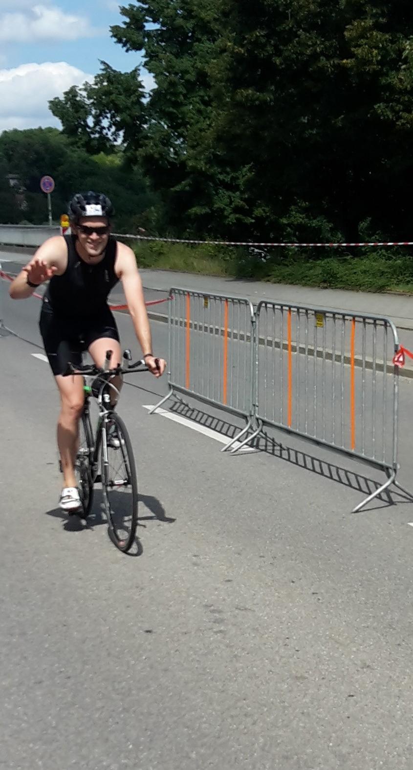 Aber auch das ging irgendwann vorbei. Ich war dann auch froh, dass man in die Wechselzone schön bergab rollen konnte. Kurz vor der Wechselzone stand dann auch Itchy Frau und hat Fotos gemacht.