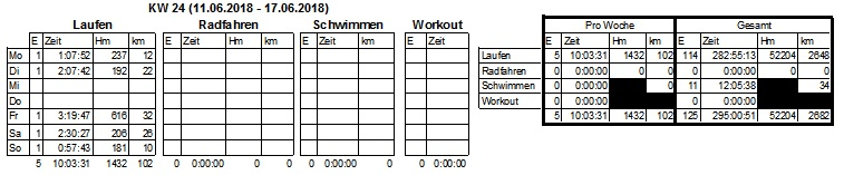 Nachdem ich letzte Woche meine Jahresserie (52 Wochen mit mindestens 100 Kilometer wöchentlich) absolviert hatte, sind es diese Woche nur magere 88 km geworden. Muss ausreichen.
