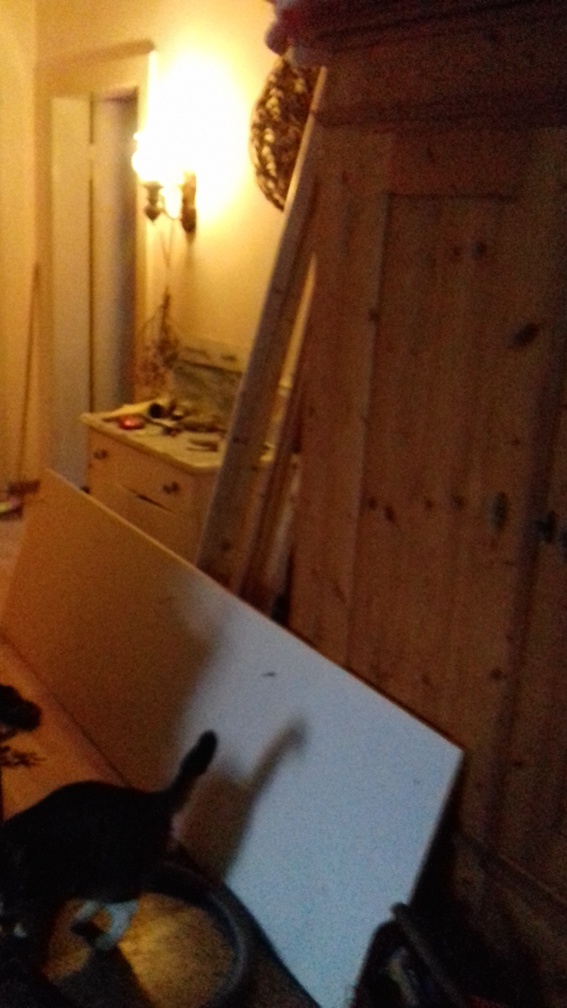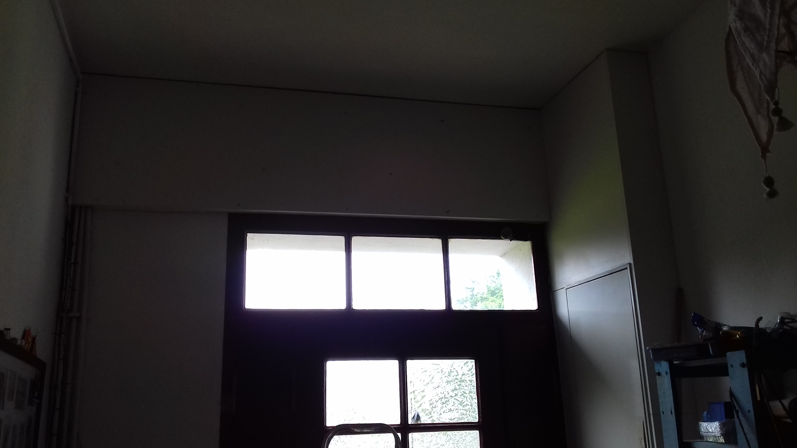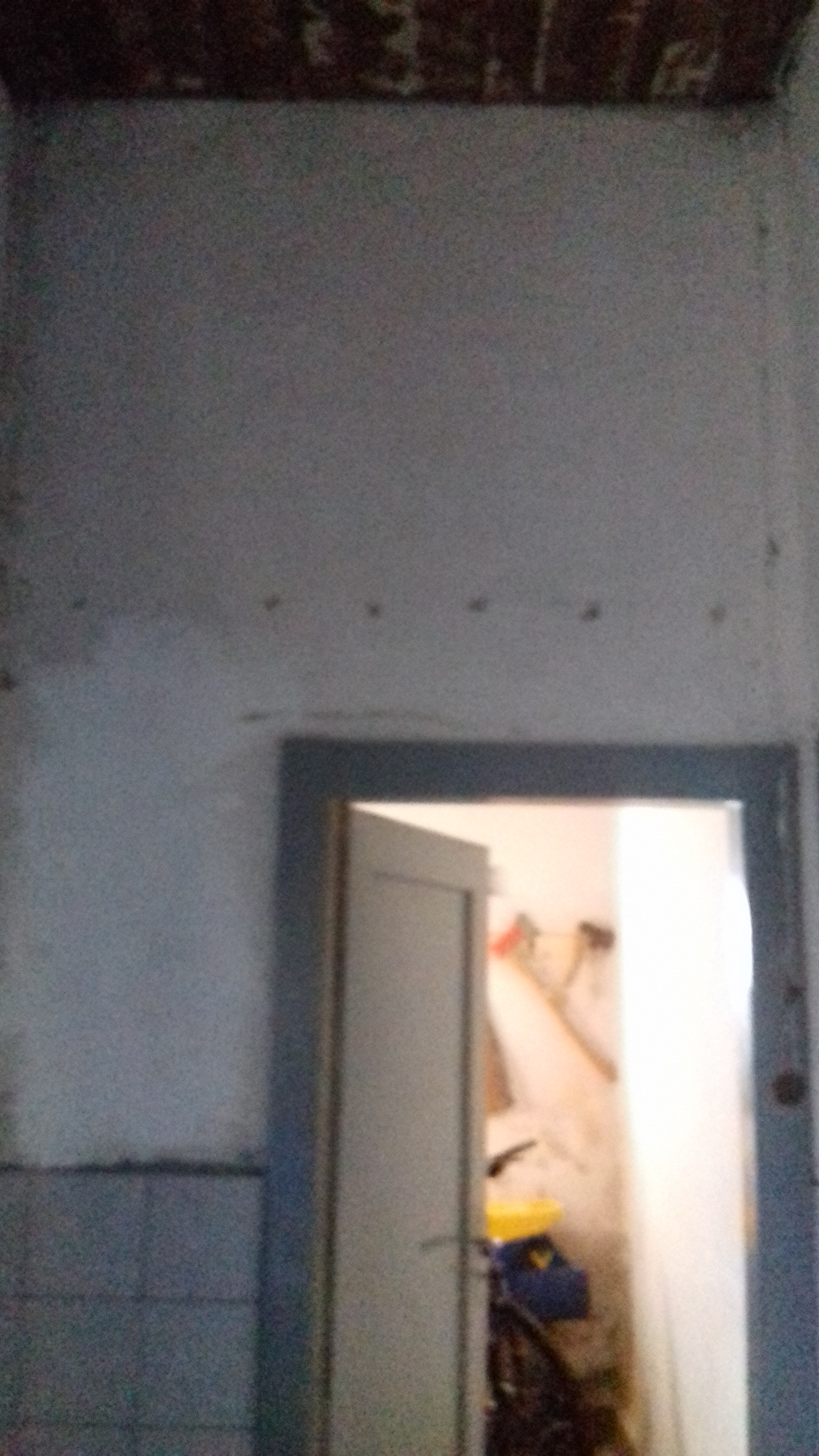 Obere Lattung entfernt...und bei der Platte über dem Stromkasten versagt :'( Ich kann nur ahnen, dass sie wohl geklebt ist, habe versucht, mit einem Messer ringsrum zu schlitzen, habe links reingefasst und gezogen...keine Chance. Da muss der Meister ran, für mich bleibt dann, die Flurschäden zu maskieren :lol: