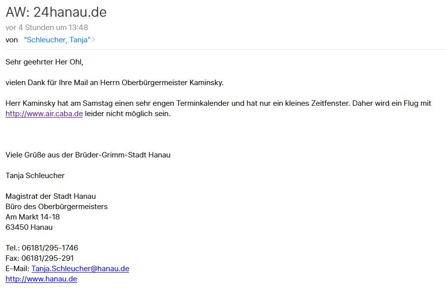 wer würde denn wann in Hanau aufschlagen?