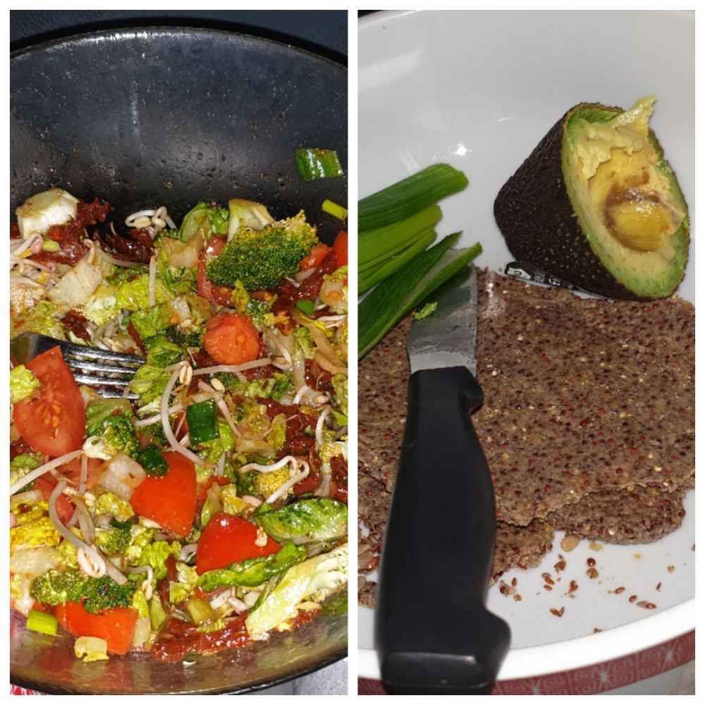 (Der nicht ganz Vegane) Lachs auf Möhrentagliatelle und Tomaten-Avocadospiegel