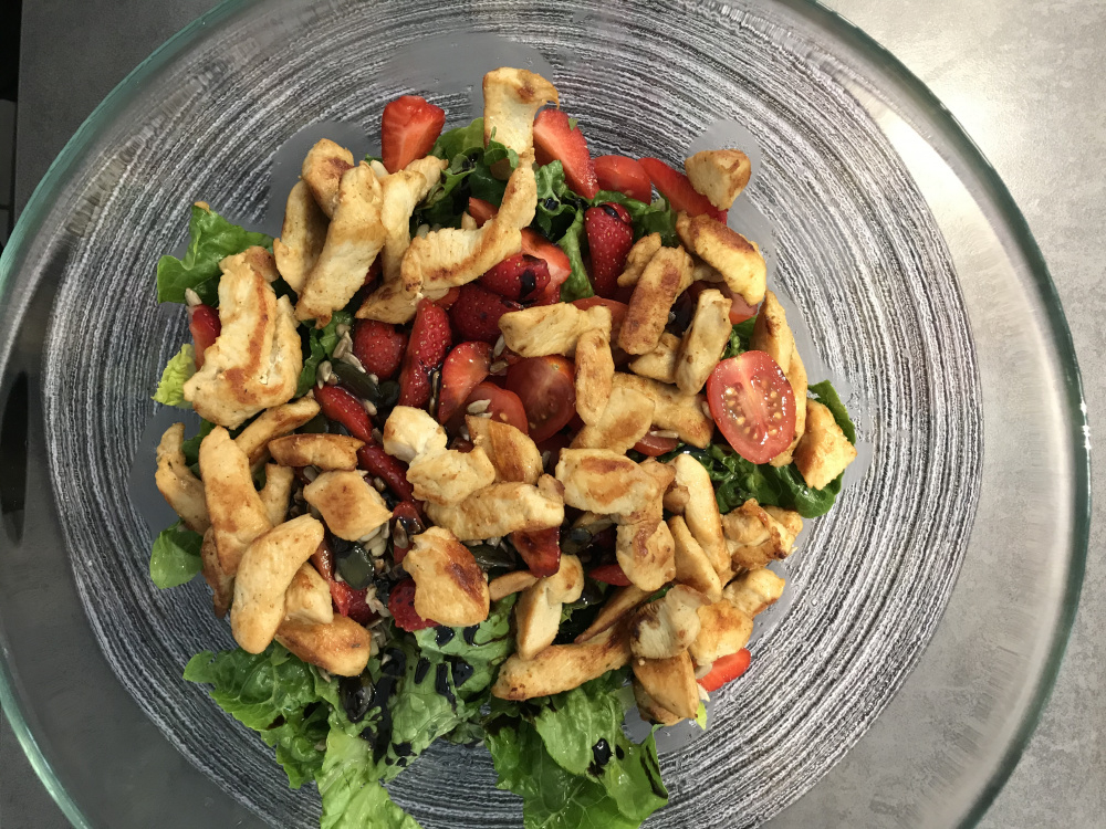 Grummi Die Frage ist, was bedeutet für den einzelnen Salat? Wenn man genau hinschaut, sieht nan bei meinem heutigen Mittagessen ein paar grüne Blätter durchleuchten - das ist Salat, glaube ich jedenfalls. Hauptbestandteile sind jedoch Hähnchen, Erdbeeren, Tomaten und Körner - für mich ist das SALAT ? :cooler: