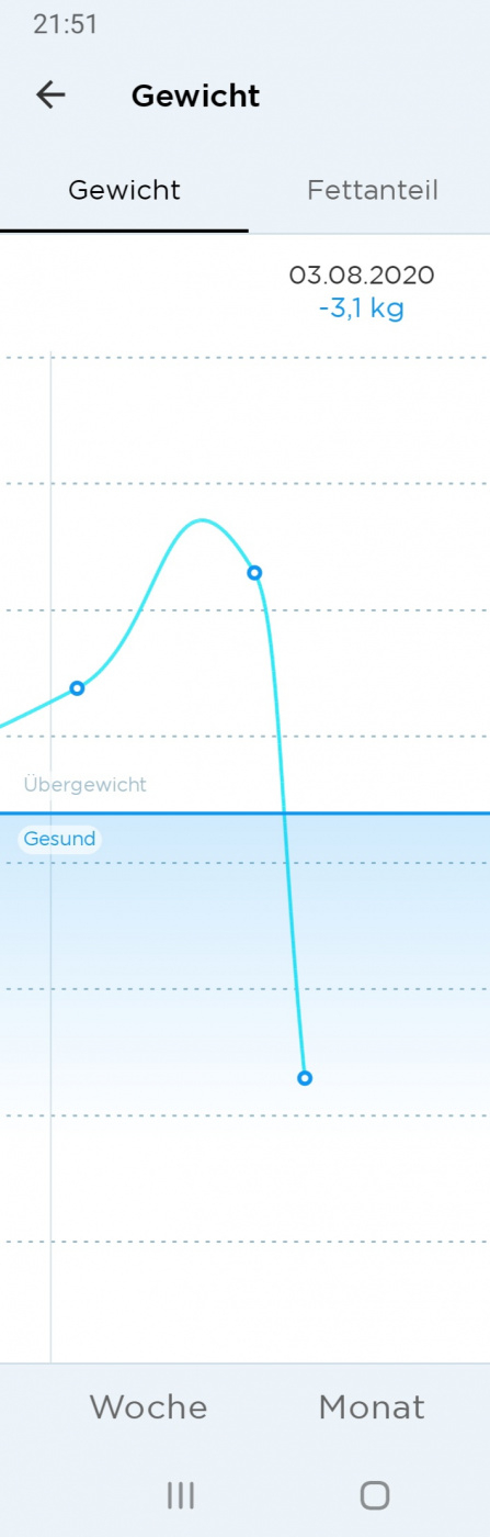 ums noch zu verdeutlichen und weil ja gerade jeder wiegen tut: Waage heute morgen vs. nach dem Lauf. (Auf der Arbeit trink ich 2-2,5L und die Trinkblase hatte nochmal 2,0L + ca 0,5L beim Heimkommen...; gestrichelte Linien sind 1kg)