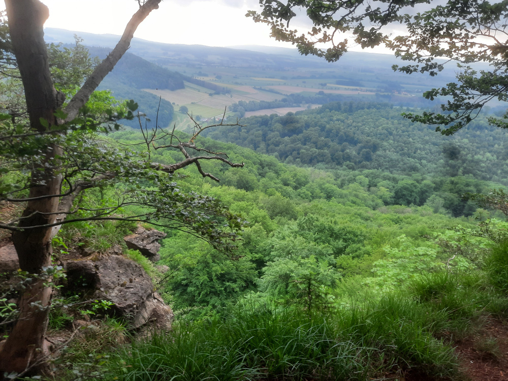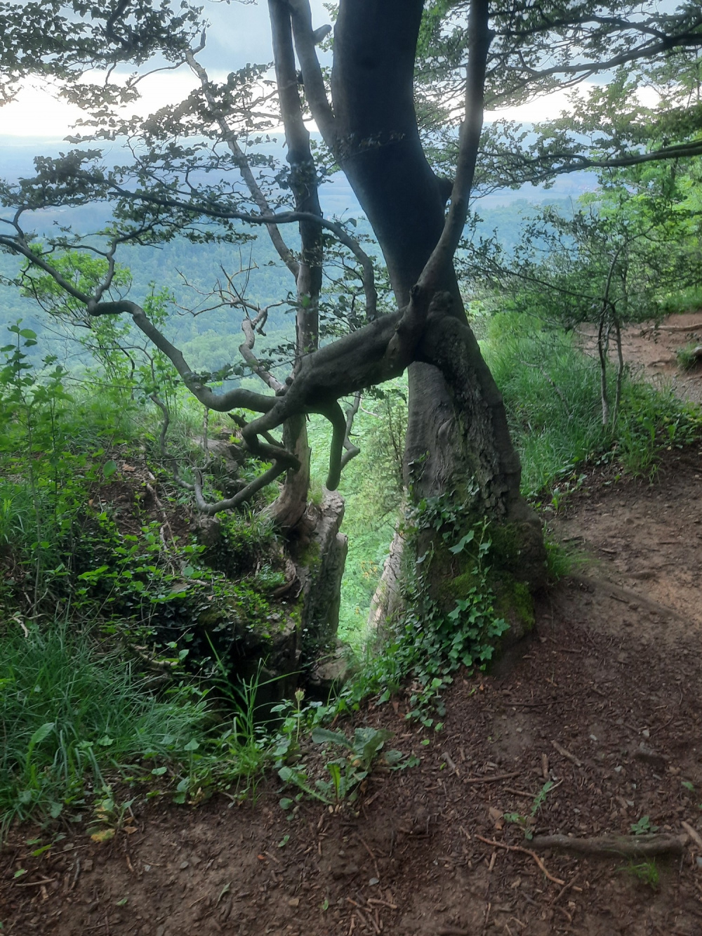 9h war Start, es ging gleich recht zügig los, aber ich habe ja gelernt, dass man gerade zu Anfang nicht zu hoch drehen darf. Die ersten ca 5km waren steil bis sehr steil... und ja, ich habe zwischendurch innerlich etwas geknirscht. Manchmal musste ich auch kurz halten, damit der Puls etwas runterging, ansonsten eisern Fokus gehalten und jeden Scheißgedanken weggeballert. Zwischendurch ca einen halben Liter Iso und Wasser und ein Gel weggenascht. Baaah, ja, das hilft, aber diese Kleberei im Maul... zum Glück wuchsen da reichlich Tannen, davon habe ich ein paar frische Nadeln gekaut (Achtung: frische Triebspitzen von Tannen oder Fichten sind super, viel Vit C und erfrischend durch das äth. Öl- aber es gibt auch Eiben, die beenden das Ganze sehr gründlich!)