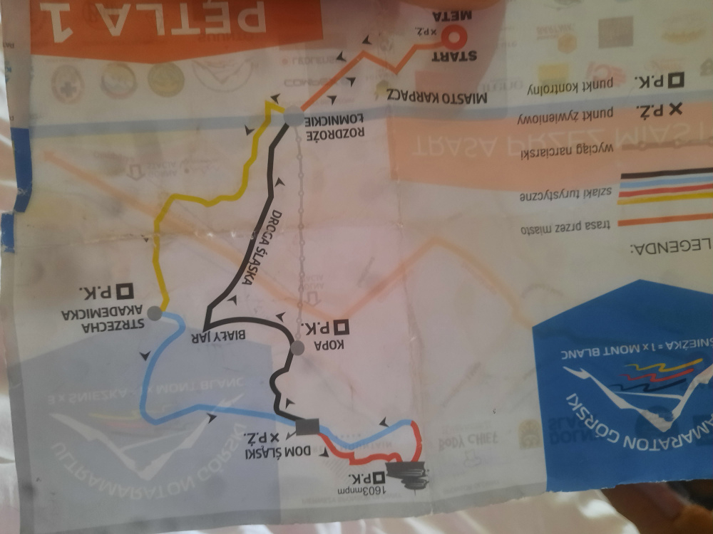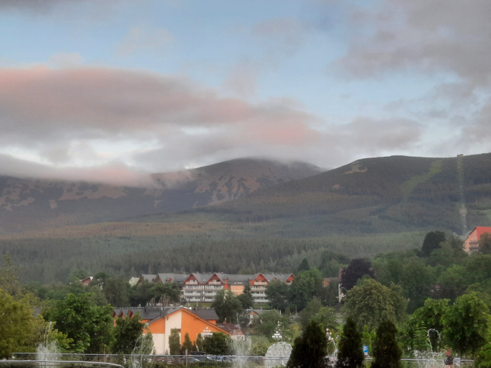 Gestern sind wir dann um 7h in den Bus nach Karpacz gestiegen und um ca halb vier in einem sehr luxuriösen Kasten eingecheckt. Ganz kurz durchatmen, danach die knapp 2km runter ins Dorf zum Startnummern holen...das wären dann schon mal 150hm :lol: Es gab ein gelbes Armband und gelbe Startnummer für die 'Minirunde', also einmal hoch zur Spitze und wieder zurück, ausserdem rot und schwarz für Double und Triple und grün für Family. Das habe ich mir dann erquatscht :lol: Wieder die knapp 2km hoch, essen, letzten Blick auf die Dame geworfen