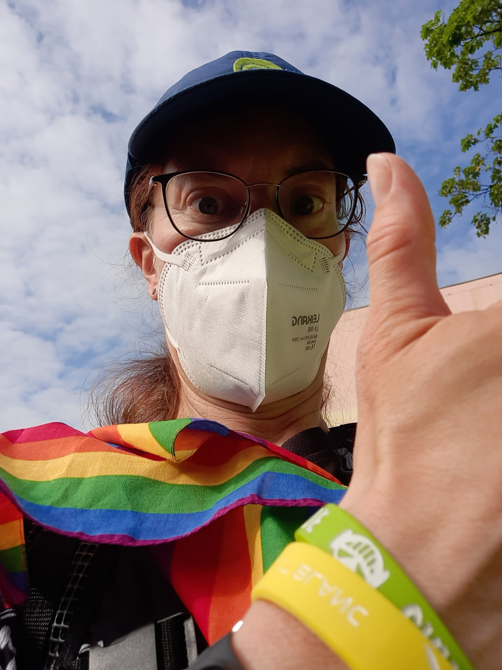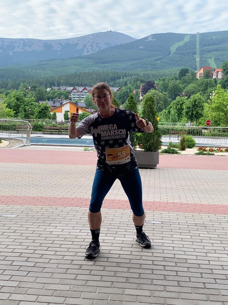 Und dann.... wurde klar, jetzt ist es nicht mehr viel! Ich fühlte mich fast etwas wehmütig, aber das blöde Grinsen war auch nicht wegzuwischen. Kurz die Regenbogenflagge von hinten am Rucksack nach vorn gefummelt...ins Dorf marschiert...gemerkt, wie es schon wieder nass um die Augen wurde, was der Applaus irgendwie nicht trockener gemacht hat... und whow, was für ein starkes Gefühl im Ziel! Etwas heulerich, stark im Kern, Wachstumsschub um 10 Zentimeter :cooler: Danke, ŚNIEŻKA :prinzessin2: