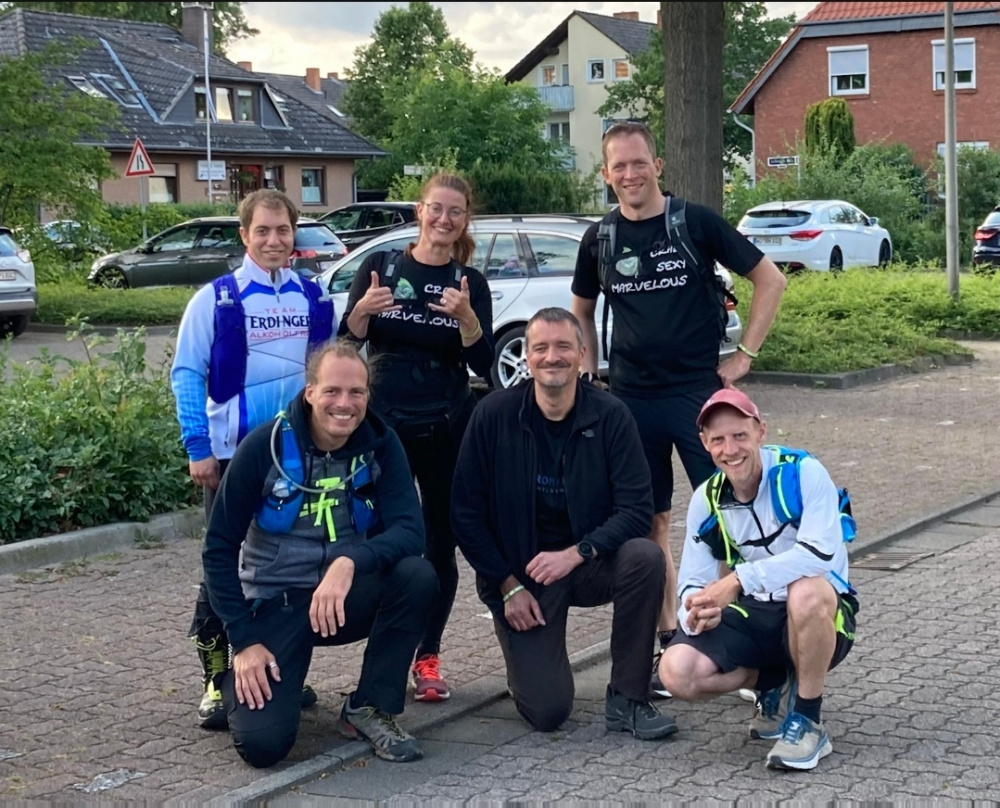 Trotzdem trafen wir uns absolut auf den Punkt auf dem Umsonstparkplatz. Das übliche Eibstiegsgefussel und dann ging es los. Was soll ich sagen- danke, Jungs :herz: total nett mal eben die 30km gemacht, teils gequatscht, teils geschwiegen (ich schätze beides). Ich hab immer mal auf die Strecke geguckt- jaaa, ich habe sie schon reichlich gemacht, aber da bin ich frei von Verantwortung :lol: Wir waren gut mit ca 5,5 km/h unterwegs.So um Msrdorf herum wurde es langsam dämmerig, meine Kopflampe wirkte lächerlich...zumindest in Konkurenz zu den anderen (mir ist mein Batterienladegerät spontan gestorben :schaem:und die LICHT!!!-Ponywiesenlampe war mir zu schwer.