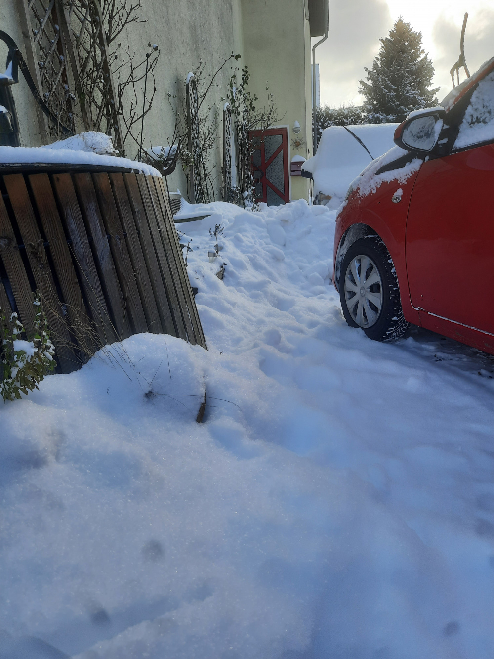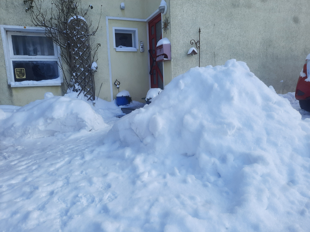 Ich glaube, ich würde sogar mit meinem Kleinen (wir reden übrigens von einem Peugeot 108, also einem Kleinstwagen) da hinkommen- aber ich würde ihn siche nirgens so abstellen können, dass ich ihn hinterher nicht ausbuddeln müsste, vorrausgesetzt, es gibt überhaupt eine Parkmöglichkeit. Rodenberg ist gerade parkmäßig eine Katastrophe, weil das weiße Zeug ja nunmal irgendwo liegen muss...also halt in den Parkbuchten. An der Schule geht es für mich gerade gar nicht, ist halt so. Ich bin halt im Auto sehr begrenzt Gefahrensucher, komme mit Schneefahrten gut klar, will aber auch keinen nötigen, mich retten zu müssen :crazy: