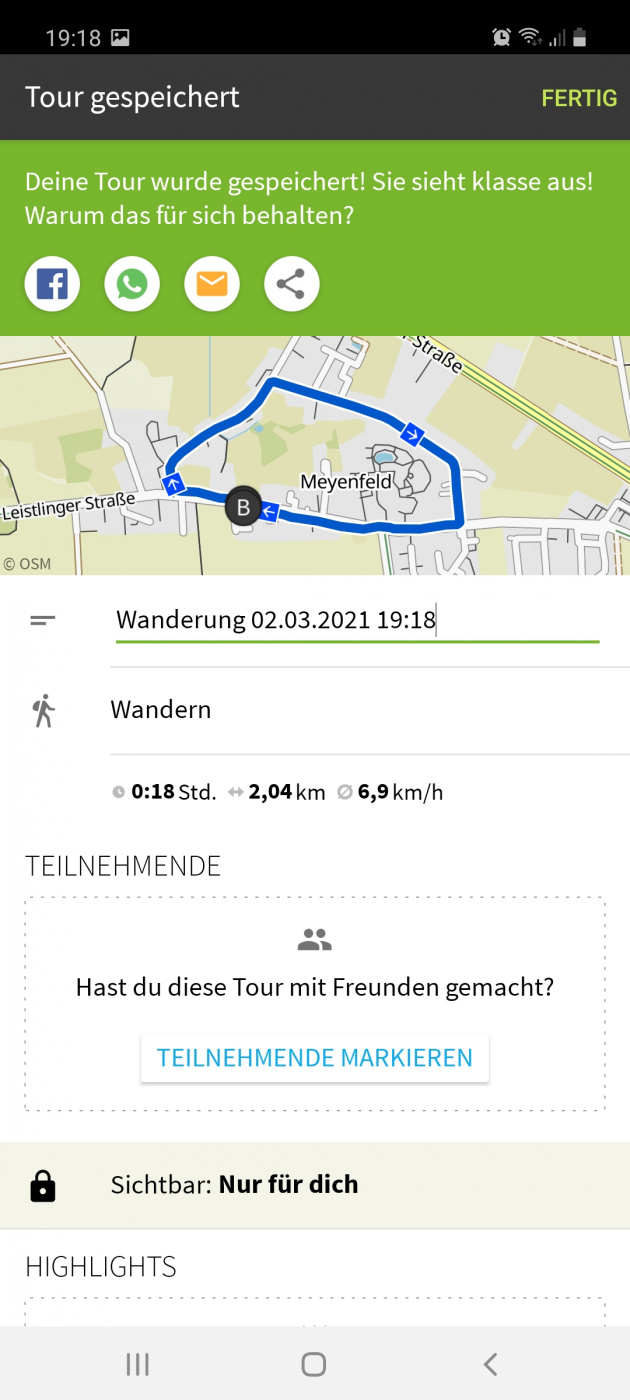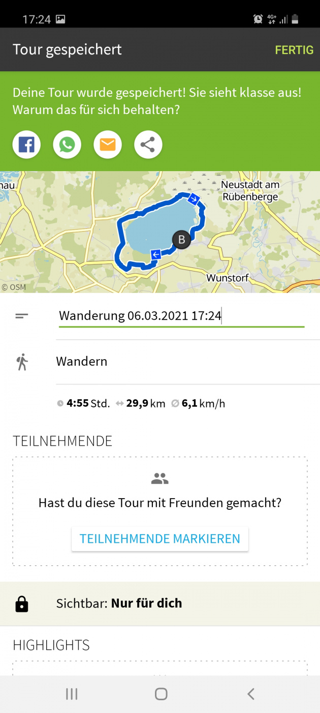 Wir waren richtig flott unterwegs. Zu der Bewegungszeit kommen noch mal 10 min Rumstehzeit, weil mein Tiertourette wieder zugeschlagen hat (wer mit mir schon unterwegs war, weiß, was ich meine :lol:). So viel mir dieser kleine Fussel auf
