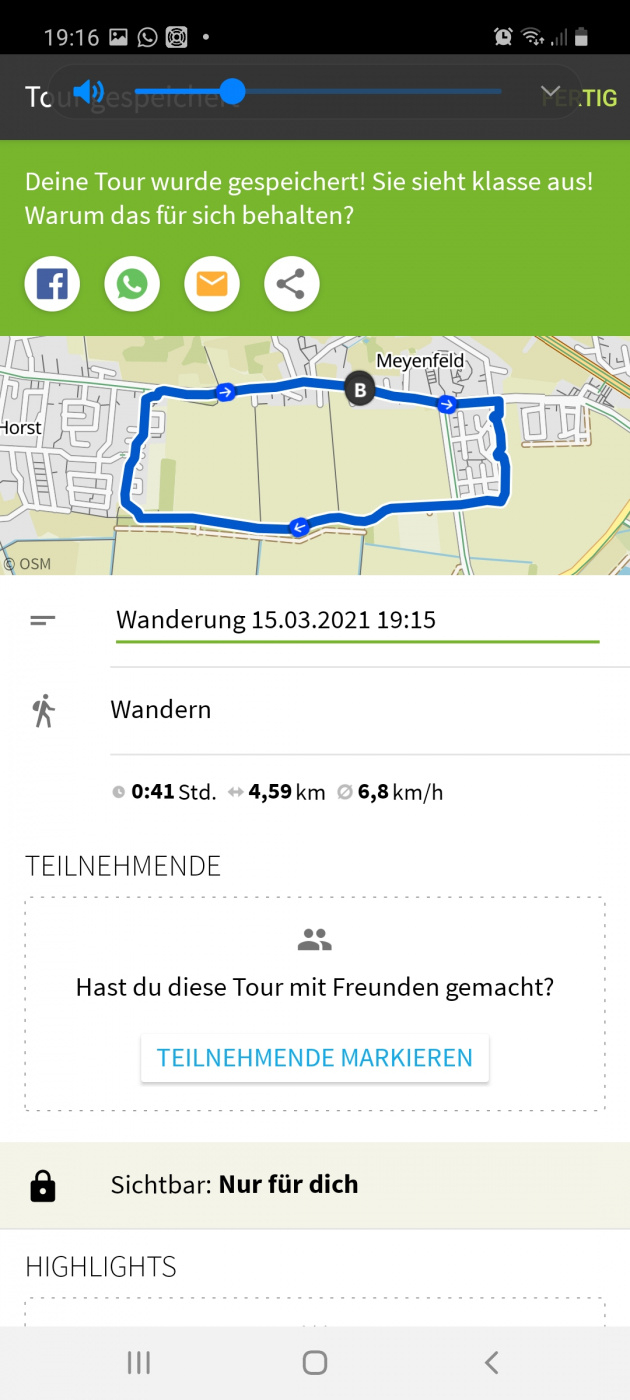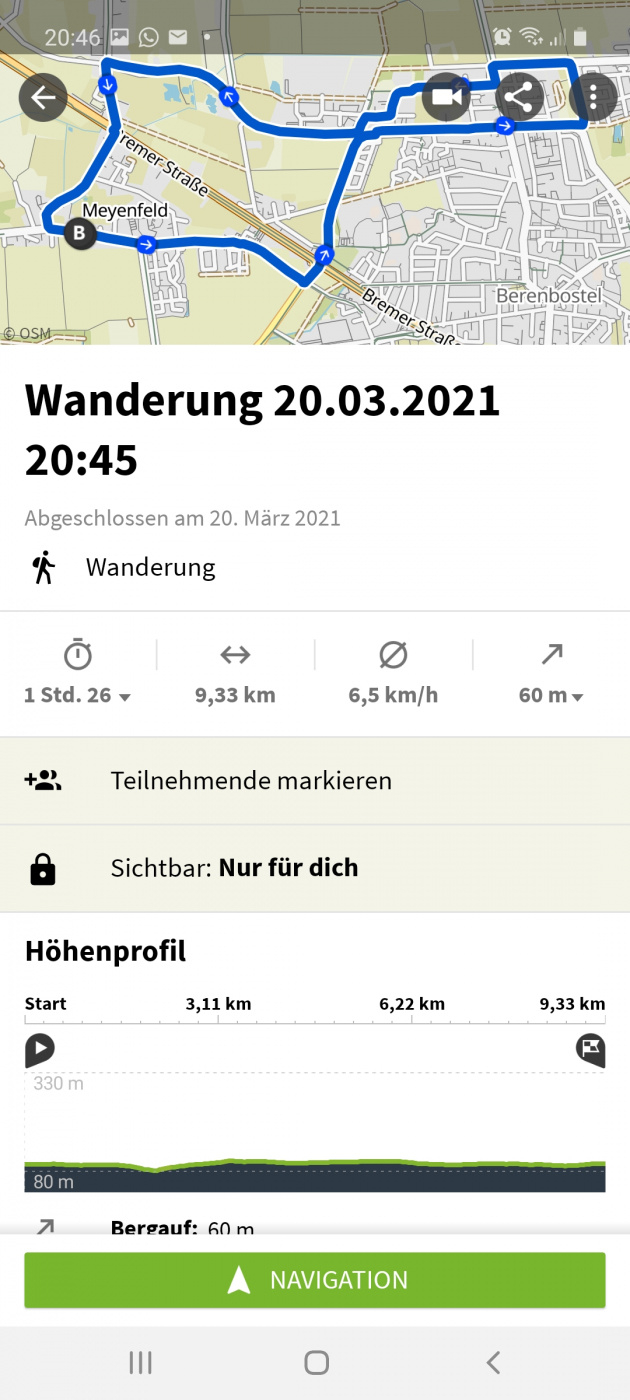 Mit dem Blonden gab es dann noch schöne 6km (und ZHT). Wenn man mit einem großen Vierbeiner gerade abends bis kurz vor Dämmerung unterwegs ist, begegnet man sehr nahe aller möglichen Fauna; Stare, Lerchen, ein großer Raubvogel (ca 3m entfernt), diverse Rehrudel. Und ein Bundspecht. Das sind diese grüngefleckten, die einen Kühlschrank-großen Rucksack schleppen und sich offenbar zur nahegelegenen Kaserne orientieren müssen :grins:Er sah nicht sooo glücklich aus, aber mein "viel Erfolg" wurde dankend angenommen.