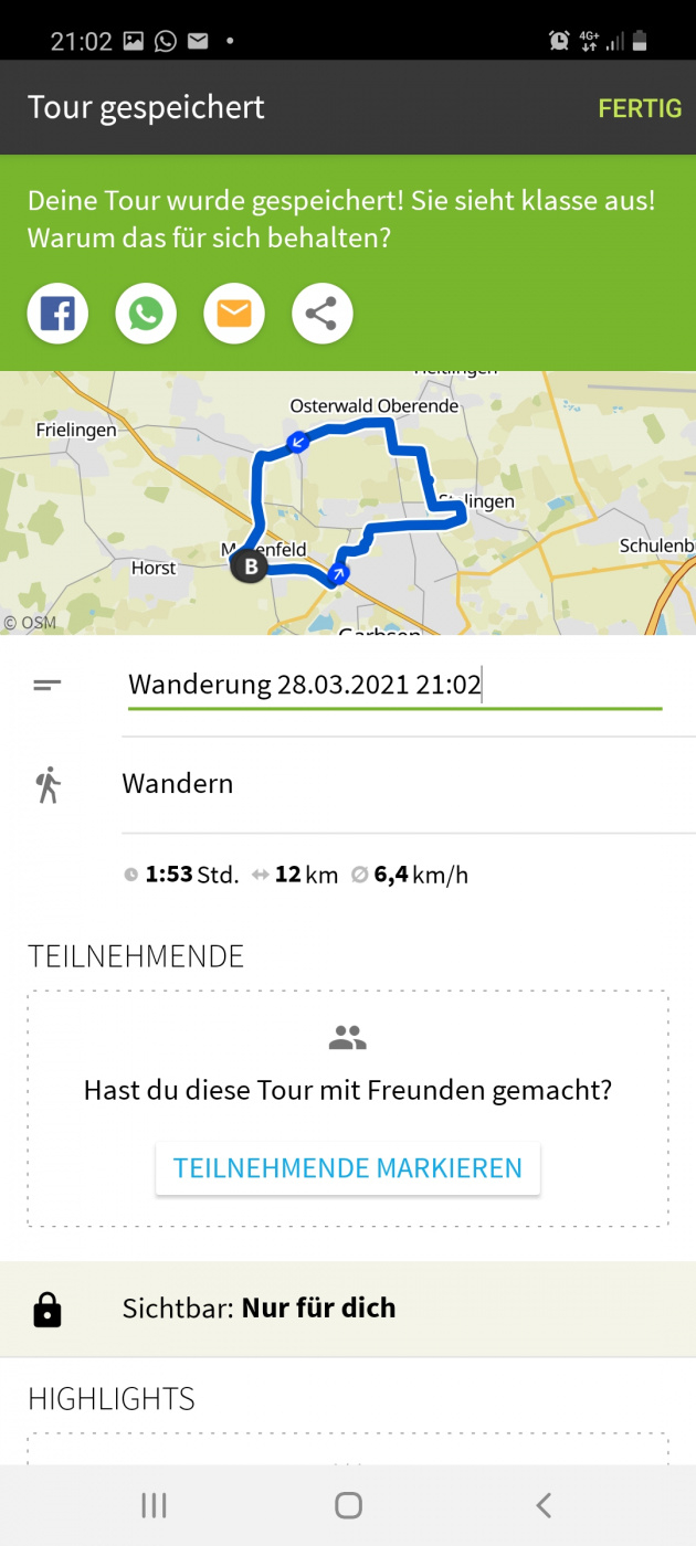 Zum Ende der Moorumrundung hab ich dann einen Geocacher getroffen und mit ihm drei km verquatscht. Ich liebe solche Situationen, wenn die Strecke einem unverhoffte Begegnungen gibt.