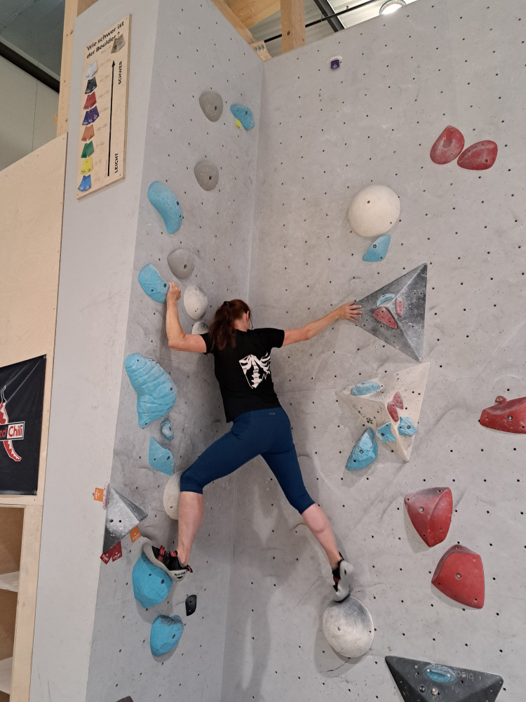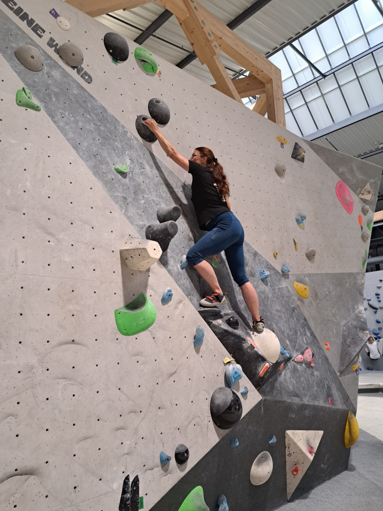 Wobei wir beide sehr unterschiedliche Fähigkeiten haben, im Gegensatz zu mir traut sie sich problemlos, mit Pfostenhilfe das Bein Hochzuschwingen und sich ins Sitzen hochzudrücken.