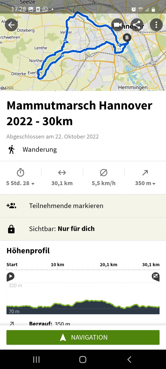 Ihr erinnert euch, der spektakuläre Reinfall damals, als ich von Berlin aus 70km gehen wollte und sie bei km 60 wegen ManV oder so das Event abgebrochen haben... jedenfalls bin ich heute für 30km in Hannover gestartet (ich hätte auch 50km buchen können, aber so fit bin ich gerade nicht). Es war schöön!
