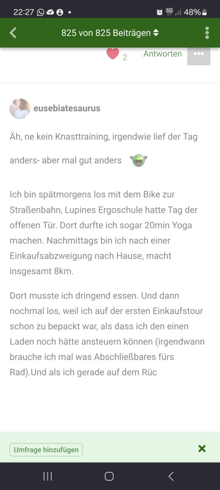 Di: nur ZHT und 4km Ponymarsch, später noch mal 3km Bike (Einkauf)