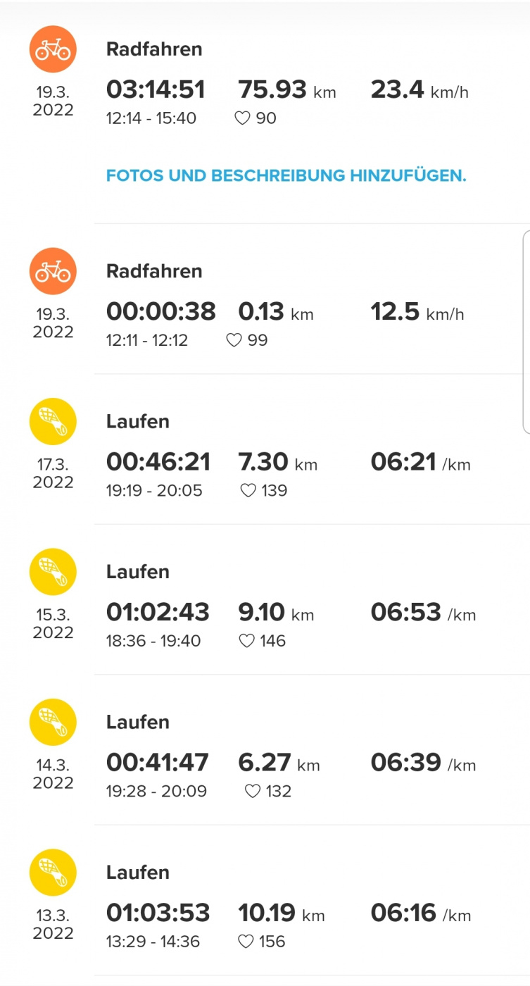 schiffsdiesel Jammern auf hohem Niveau ist das, komm hör mir auf. 32km Laufen und ,75km Rad. Nur zur Info: Ich bin heute 17km gelaufen. Es war mein erster Lauf diesen Jahres. Also bitte....