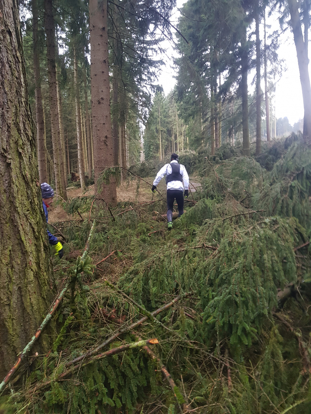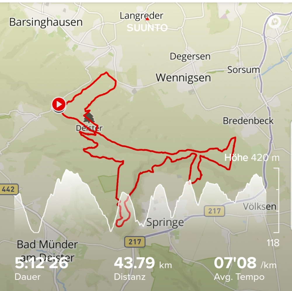 Dampfsocke Nachdem ich zwei Wochen faul war und Körberlich ein Wrack wurde, bekam ich Freitag ne Mail ob ich Sonntag beim Deister Arschgeweih Marathon mitmachen will. Da ja sowas Trainingsfrei besonders gut kommt zugesagt. Lagen auch nur ein paar Bäume quer ( nicht Zählbar, habe nicht so viele Finger) kaum Höhenmeter irgendwo zwischen 1200 und 1300. Schöner Regen und netter Wind. Sonst ging es. Gab ein VP bei km 26 also Fettfressen war auch nicht. Denke reicht und Memo an mich nie wieder Sport......... für heute. War Saugeil.
