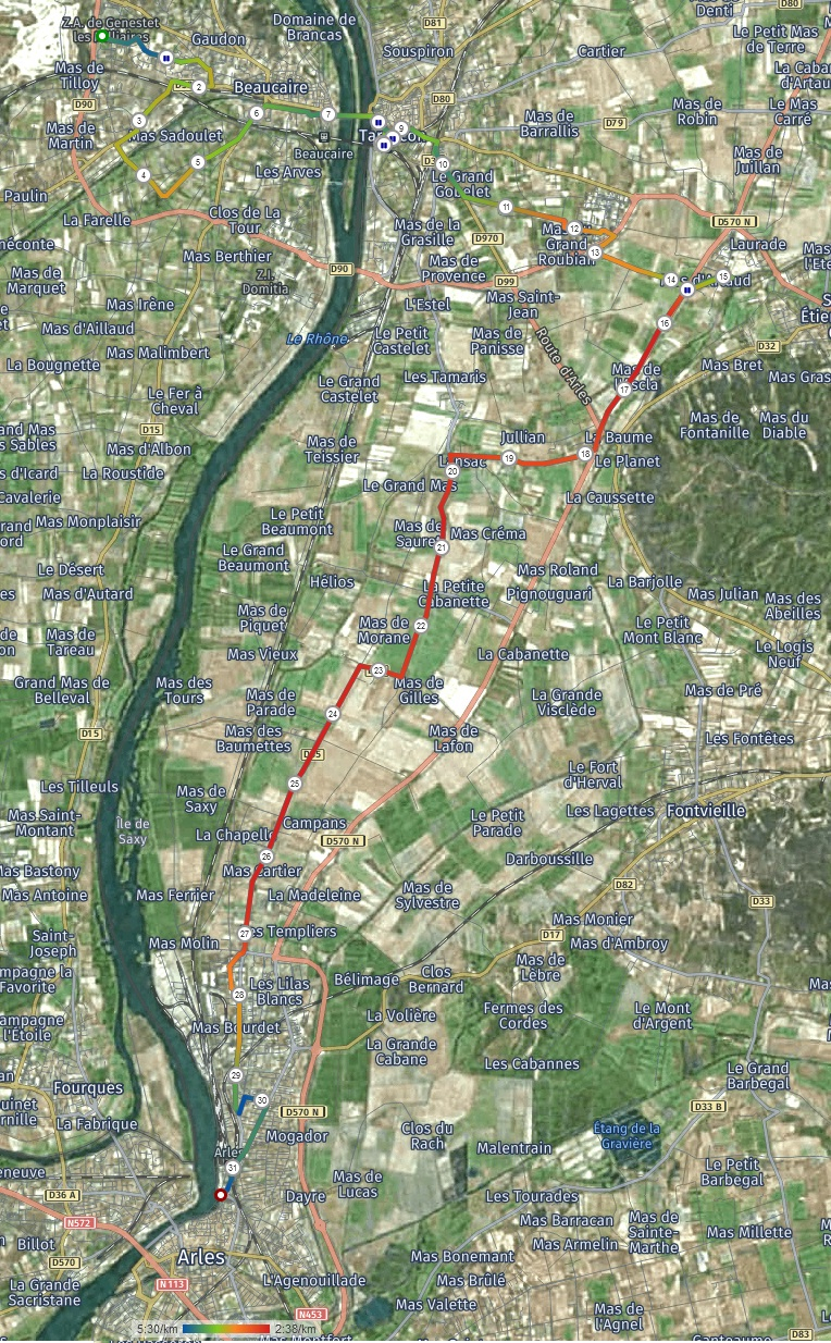 Arles - Port Saint Louis; 41km; 2:01h; 20,3km/h