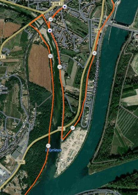 In der Touristeninfo gab es Karten von dem Städtchen, mit eingezeichneter ViaRhona. Im Hafenbereich bin ich dann auf meinen Radweg gestoßen, und hab auch die richtige Richtung gefunden.