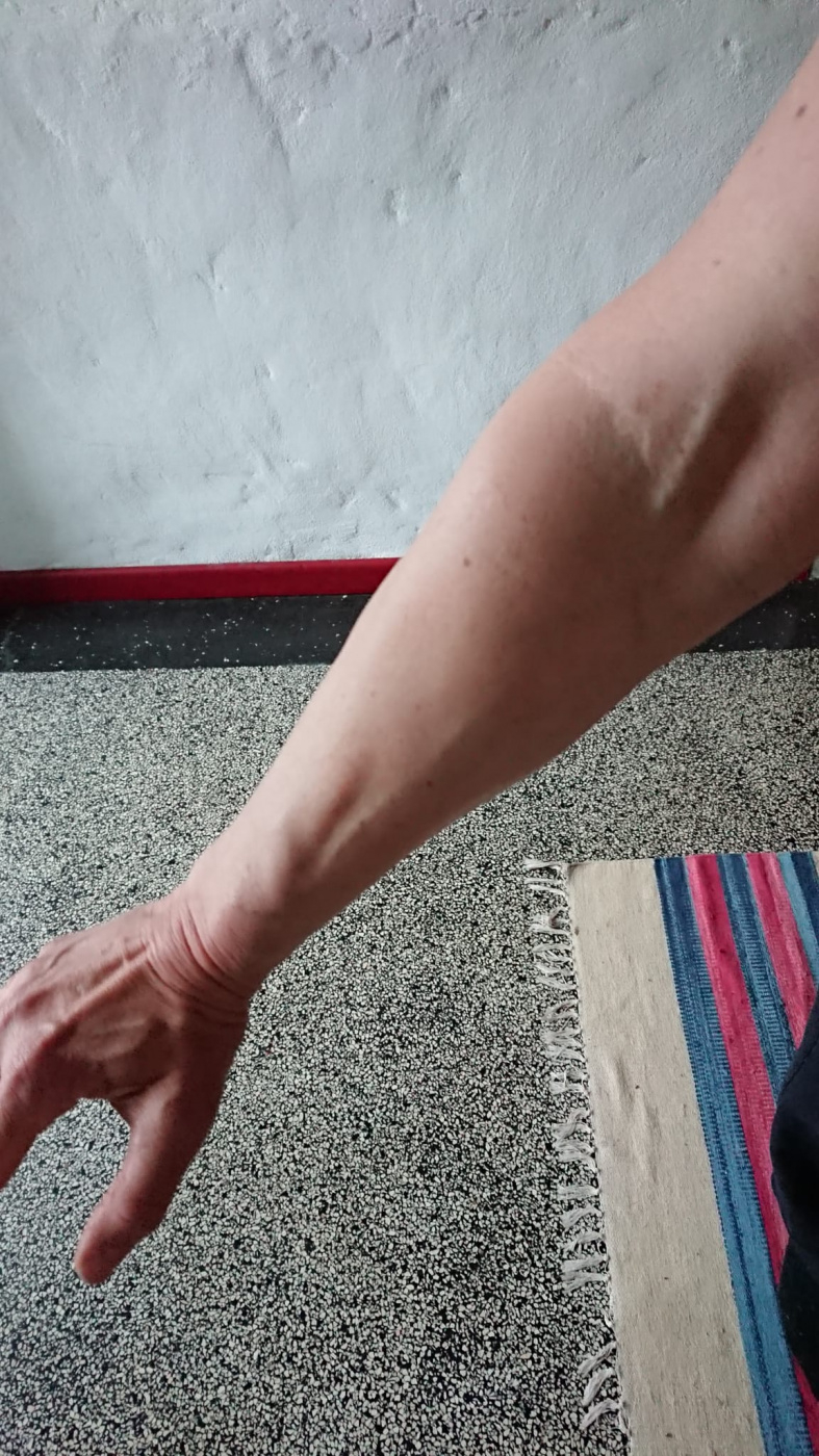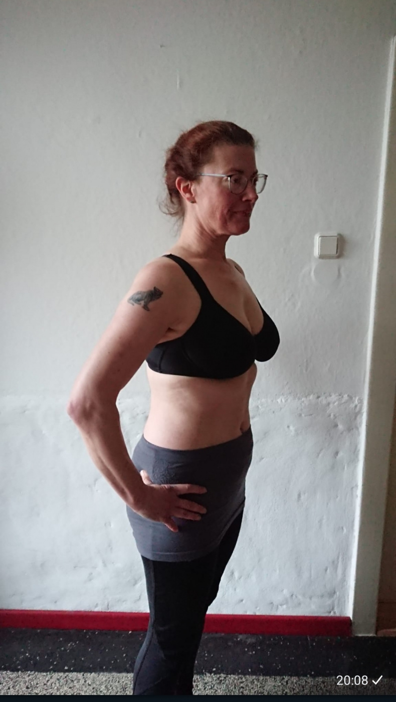 Heute 2×25+20+2×15+10 (ging irgendwie nicht mit aufhören und ich musste ja schön fürs Foto sein :lol:) Ich weiß nicht, ob man die veränderten Arme sieht, ich hätte messen müssen. Wenn es sich nur hier gerade nicht aufhängen würde... Auf jeden Fall hat sich in den Unterarmen und der Handmuskulatur reichlich getan, als ich dann endlich die Finger in die Matte boren konnte, hat es auch nicht mehr weh getan.
