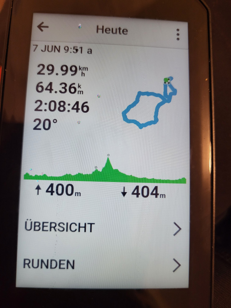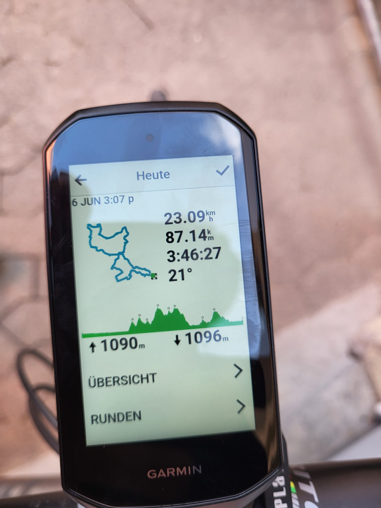 Dampfsocke Radeln läuft schon gut muss auch da ende des Monats der 3 Länder Giro wartet. Aber nach knapp 90 km und knapp 1100 HM gestern waren die Beine heute erstaunlich gut
