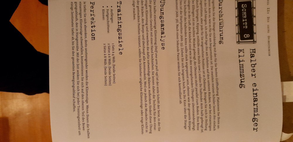 Man sieht ein Utube Video mit einer hammerharten Übung an und probiert erstmal, ob man das überhaupt kann. Dann macht man 8 Wiederholungen und denkt sich: ok, nicht schlecht, guter Pump, top Schwierigkeit. Dann macht man noch 2 Sätze á 8 WH und stellt dann fest, dass das Aufwärmen gleichzeitig auch der erste Satz war. Öh, ja gut.